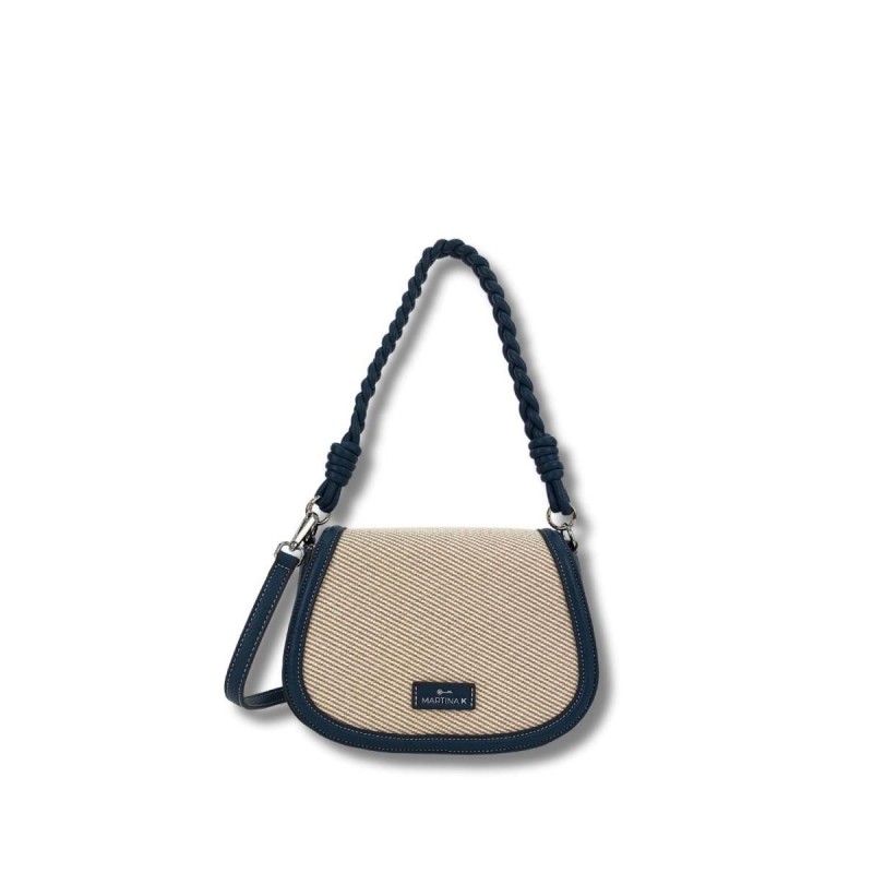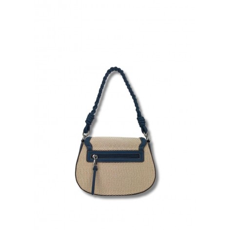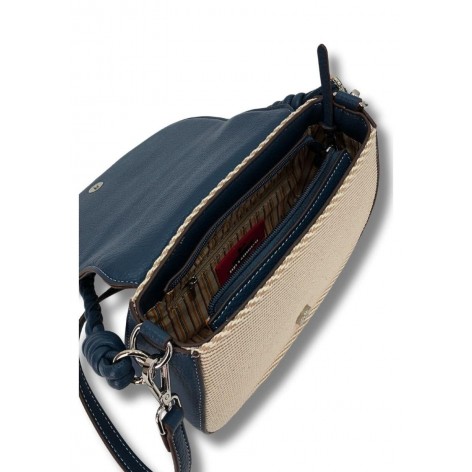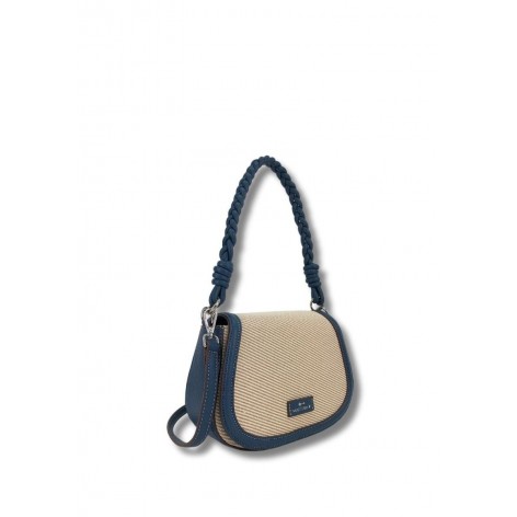 Bolso Solapa Canvas Ribete Asa Trenzada Blue Jeans