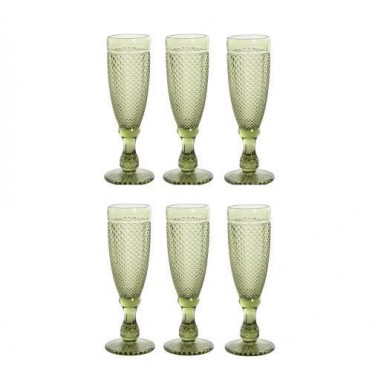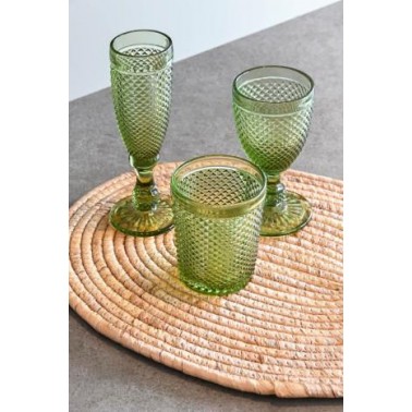Copa Set 5 Cristal Grabado Verde 7x7x20 cm